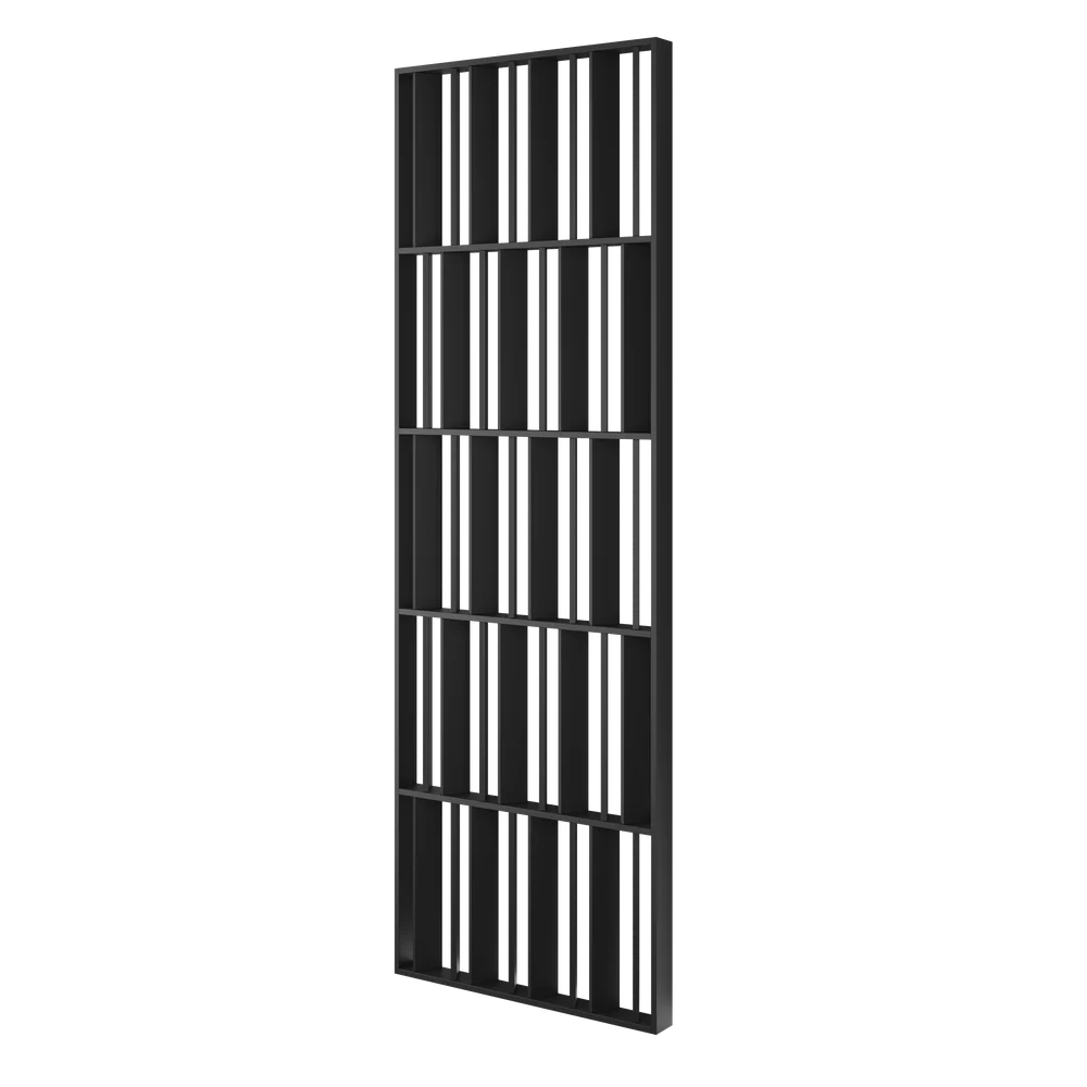 Táto deliaca priečka v čiernej farbe funguje ako výrazný grafický prvok, ktorý dokáže zjednotiť celú miestnosť – skvele vynikne vedľa prírodného dreva a ratanu, kde podčiarkne ich teplo, aj v kombinácii s betónom alebo kovom, ktorým dodá štipku luxusu. Čierna farba sa nebojí žiadnych kontrastov; perfektne ladí s pastelovými farbami, zlatú aj čisto bielu. Je to voľba pre tých, ktorí hľadajú prvok, ktorý sa neopozerá a dodá interiéru hĺbku a sofistikovaný charakter.